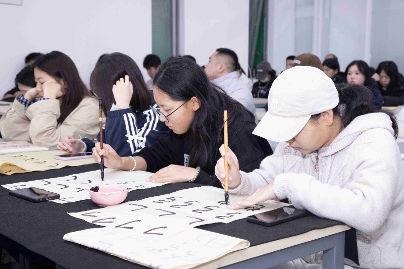 讲台上的教授气定神闲,边写边讲边示范,将行书技法剖析得深入浅出。从笔画的细微变化到字体的精妙架构,每一处都讲解得清晰透彻。在论及临帖时,更是着重突出了观察与模仿的重要性。学员们全神贯注,有的奋笔疾书记录要点,有的沉思默想领悟精髓。